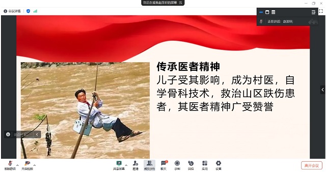 党委副书记赵静老师受邀担任点评嘉宾。硕士第二党支部书记王媛媛老师、支部全体党员和 22 中日班的同学们齐聚 “云端”,共同参与这场意义非凡的分享会。