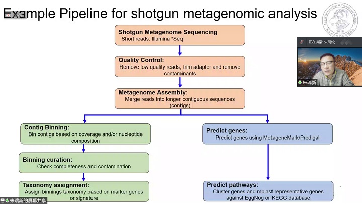 王勇副院长向与会师生介绍了讲座专家:朱瑞新博士现任同济大学生命科学与技术学院生物信息系教授、博士生导师。主要从事生物信息驱动的宏基因组方面的研究,尤其擅长于宏基因组相关算法开发以及微生物与宿主或环境互作分析。以第一或通讯作者身份(含并列)在包括Gut,The Lancet Gastroenterology & Hepatology,Nature Ecology & Evolution,Briefings in Bioinformatics和Journal of Chemical Information and Modeling等知名期刊发表多篇SCI论文,任期刊Frontiers in Pharmacology(IF=5.8)和Frontiers in Microbiology(IF=5.6)副主编。