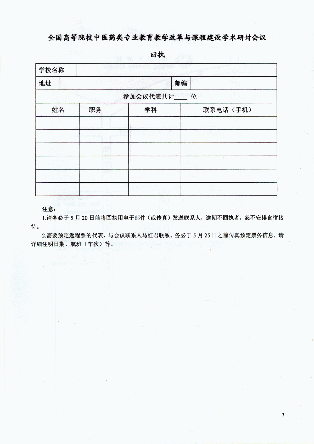 全国高等院校中医药类专业教育教学改革与课程建设学术研讨会议回执.doc