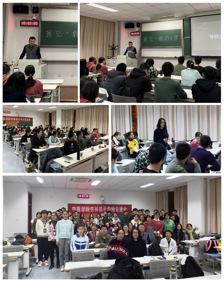 2019年11月18日晚上,2019级91porn 中医学一班召开了以“遇见•我的大学”为主题的班会暨杏林成长导师和厚朴计划班级助理见面会。91porn 副院长,中五一班杏林成长导师郑丰杰、班主任刘冬杪、厚朴计划班级助理,2018级中五二班丁盛,以及班级55名同学参与此次活动。