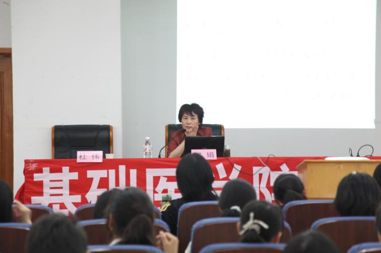 基础医学院副院长贺娟教授。讲座由我院党总支副书记杜伟主持,我院青年教职工以及在校学生等共计200余人参加了本次讲座。