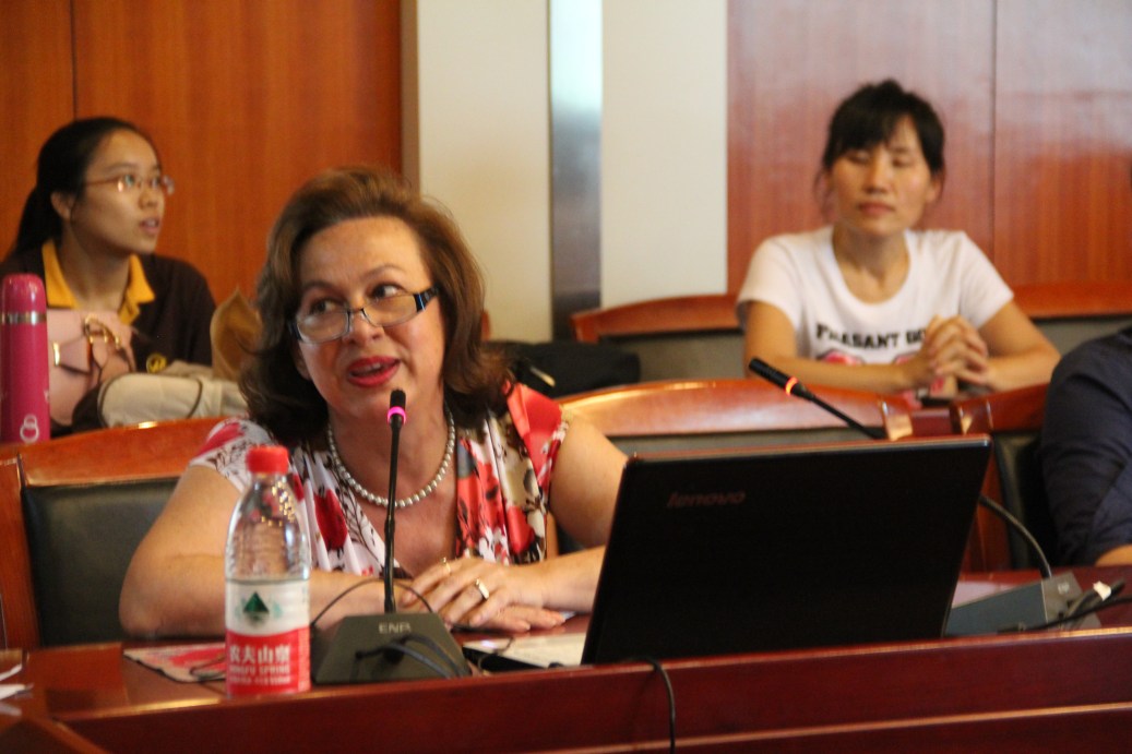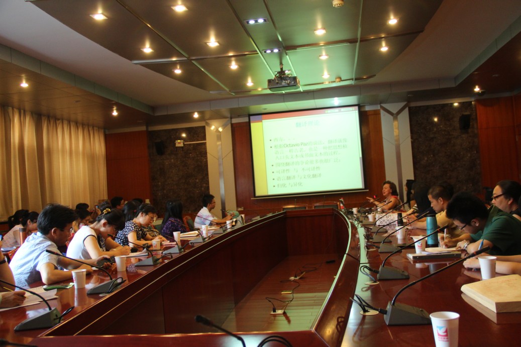 与会的老师、学生们与Liljana Arsovska教授针对翻译的各种问题、中医在墨西哥的传播、中国传统文化的在墨西哥展开了热烈的讨论和交流。Liljana Arsovska教授对同学目前学习状况进行了解,表示中医药学的翻译和文化传播,需要中外学者的共同合作,希望搭建一个中-外中医学翻译的平台,希望同学们能担起中医的海外传播和翻译重任。Liljana Arsovska教授提到西方人目前对传统医学疗法非常感兴趣,认为如果能有一个墨西哥医学生学习中医学的平台就更好了。国际交流与合作处张立平处长针对Liljana Arsovska教授提到的外国人学中医的学习问题,阐明我校远程中医药英语硕士班的教学模式,就是为喜欢中医的外国人搭建的平台,希望能与墨西哥理工大学医学及顺势疗法学院合作,为中医药在墨西哥的人才培养提供支持。