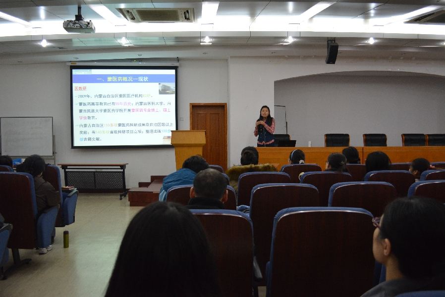 11月19日下午,第十五届学术节基础医学院分会场,“蒙药研究的几点体会——我所经历的中医药和民族医药的交叉融合”专题讲座在博物馆一楼报告厅成功举办,讲座主讲人是我校民族医药研究所的佟海英副主任医师,学校部分老师及近百名学生参加。