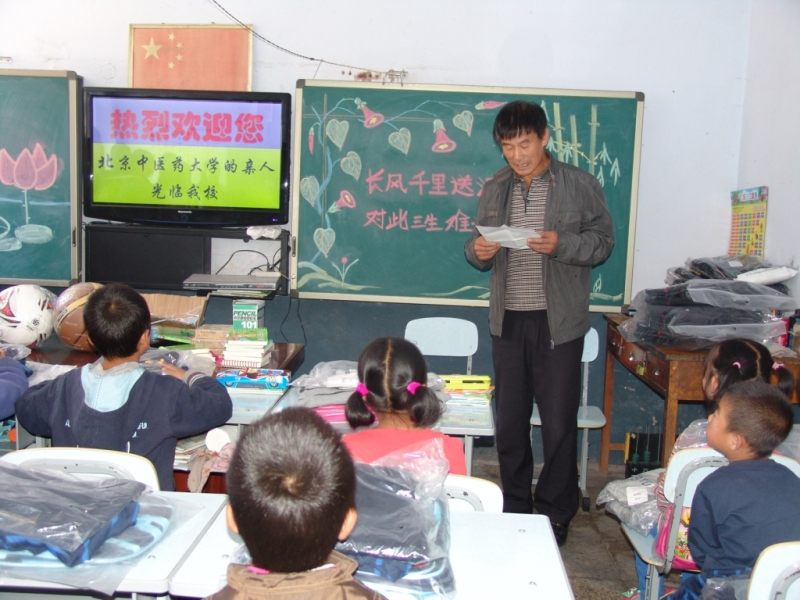 邓栅子小学全称为邓栅子新奥光彩小学,位于河北省丰宁满族自治县,大多数学生因离家较远,平时寄宿在学校中。本次社会实践活动,为邓栅子小学的师生们带来了我校师生捐赠的衣物、书籍、其他学习用品,同时我们还带去了应急用的碘伏和纱布,带去了我校青年党员医疗卫生服务的一技之长。袁校长说这真是贴近生活,最实用的物品。邓栅子村有一个简单的诊所,但却没有大夫,镇上的大夫每周来出诊两次,遇到急病,根本没有办法处理。在这个缺医少药的大山深处,91porn 每去一次,都可以说是当地群众的福音。