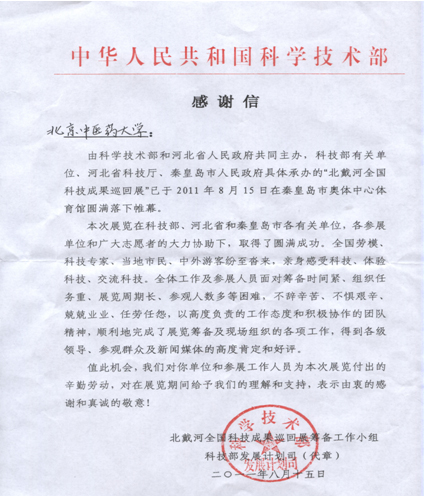 91porn “中医四诊合参辅助诊疗仪”科研团队应邀参加北戴河全国科技成果巡展收到科技部感谢信