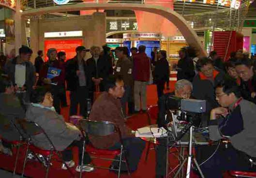 图2:2008年11月WHO“中国中医药展”众多观展者排队咨询、体验四诊仪