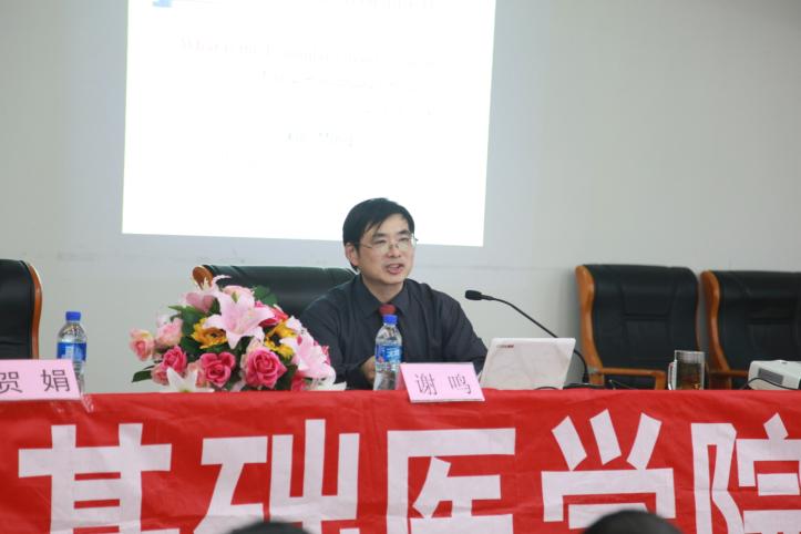 基础医学院方剂教研室博士生导师谢鸣教授。讲座由我院副院长贺娟教授主持,我院青年教职工以及在校学生等共计200余人参加了本次讲座。