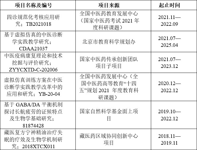 在“863”青年基金、国家自然基金、“973”子项目和“十一五”支撑计划等16项国家和省部级项目支持下,对脾虚和肝郁证候及失眠、疲劳等相关疾病进行了研究:以第一/通讯作者发表论文214篇,其中SCI论文21篇,总IF67.723,主编学术著作10余部,专利5项(第1),软件著作权1项(第1),获中西医结合学会一等奖(排名第2)等8项省部级及以上科研奖励。主编和副主编教材各4部,获北京市优秀教学团队(负责人)、教育部“高校青年教师奖”、北京市高等学校教学名师和北京市课程思政教学名师等省部级教学奖励12项,成果应用于临床及海军健康保障,并在抗疫过程中形成的4部著作、5个指南或建议等系列成果,推进了中医学在航海医学及疫病防治和康复中的应用。